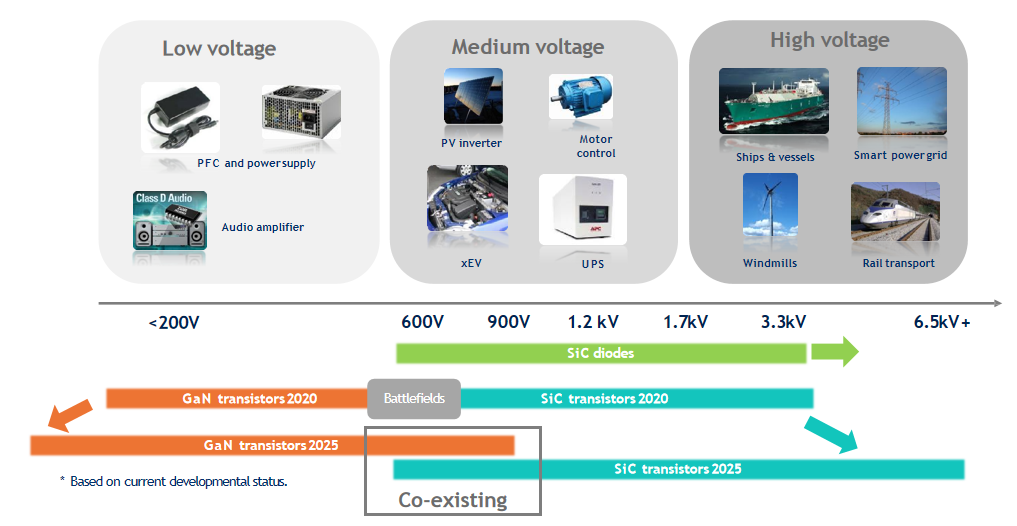 图五 WBG market segmentation as a function of voltage range(source: Yole)