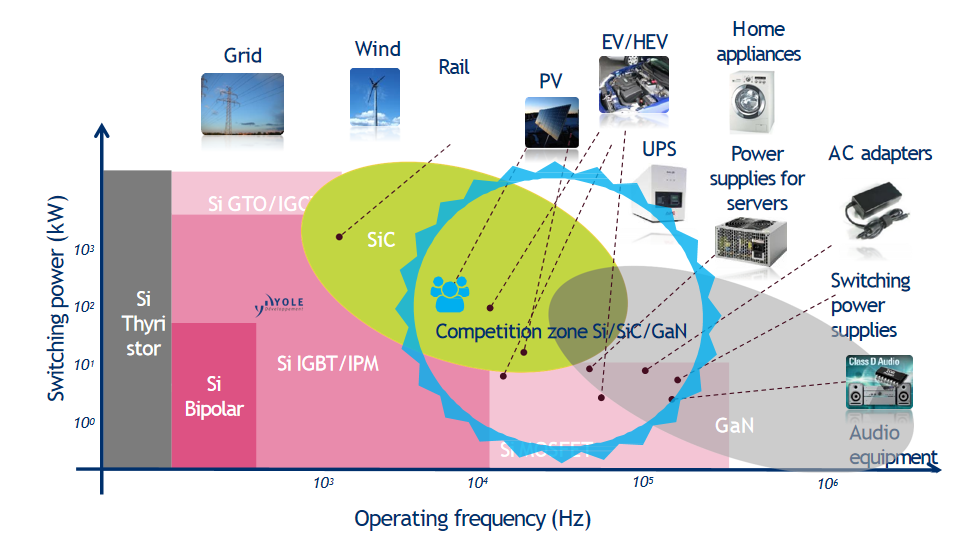 图四 Power Device positioning as function of power & frequency(source:Yole)