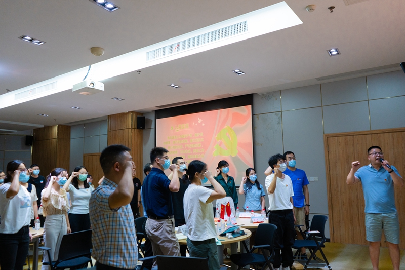 为庆祝中国共产党成立101周年,在“七一”来临之际,松山湖材料实验室党总支创新党课形式,为党员同志策划了一场别开生面的“峥嵘——党史情景沙盘”党课,带领党员回顾建党历史,重温入党誓词。