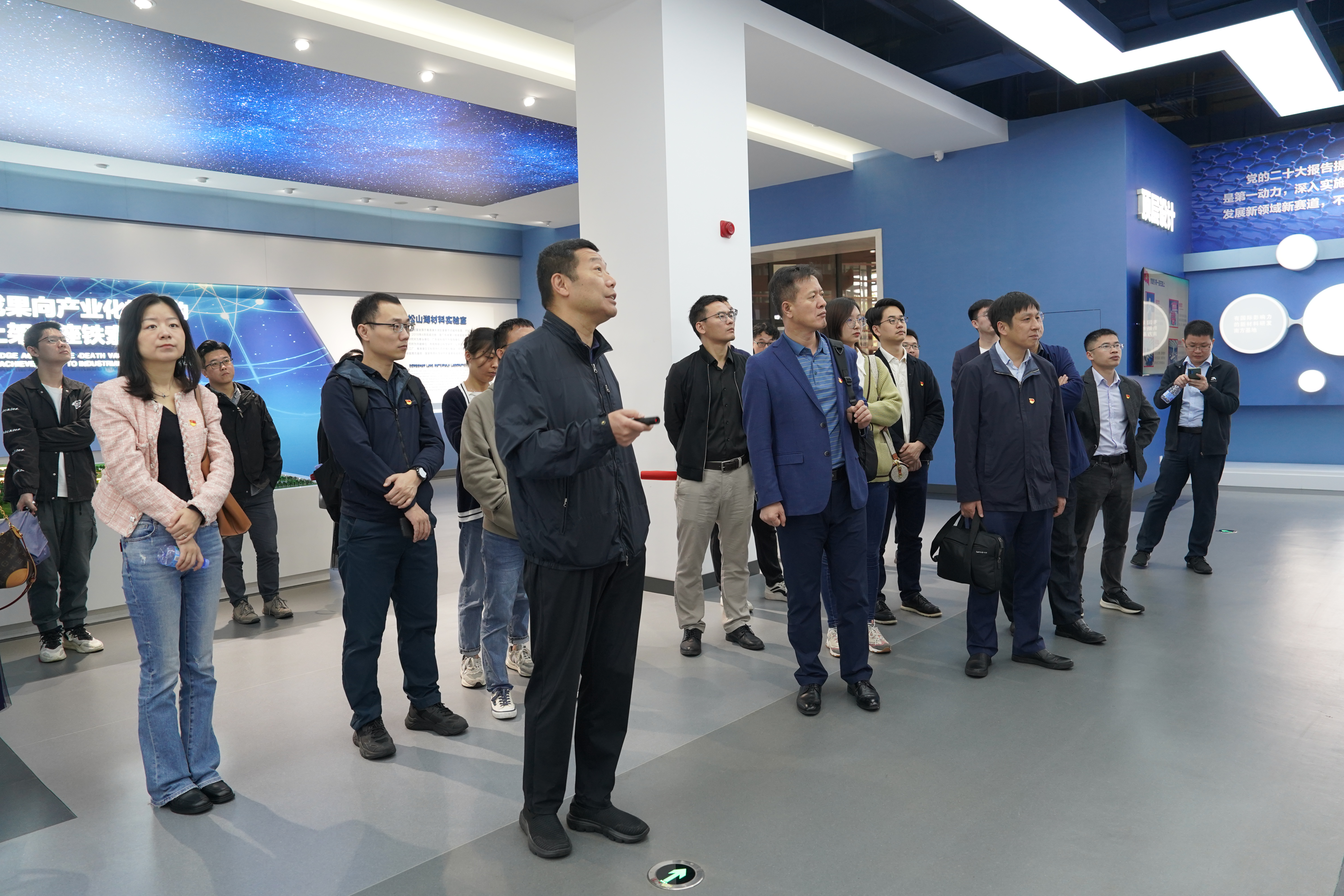 首先,冯稷书记为材料科学与工程学院教工党支部党员讲解了松山湖材料实验室展厅,介绍了松山湖实验室的组织架构、战略规划、发展历程、人才队伍建设、研究方向、实验室的全链条创新模式等方面的概况。