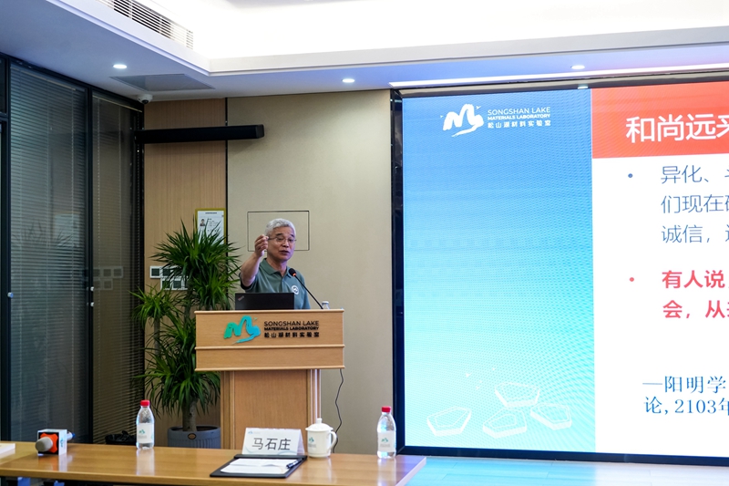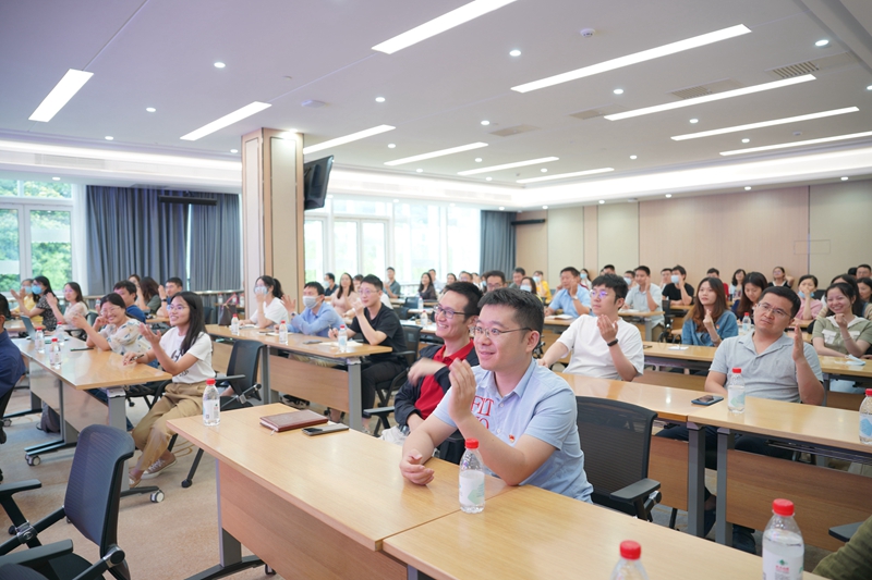 6月6日,为庆祝中国共产党成立102周年,深入学习贯彻习近平新时代中国特色社会主义思想和党的二十大精神,松山湖材料实验室党委特别邀请中国科学院大学马石庄教授讲授《现代中国》专题党课,实验室党委书记冯稷主持,百余名党员参加。