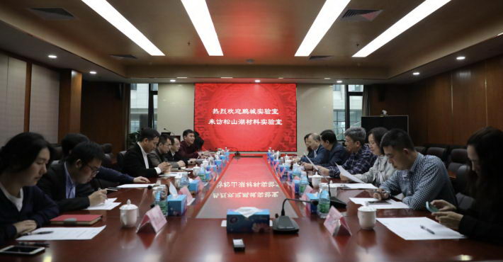 邹鹏一行首先参观了实验室展厅并观看了实验室宣传视频,接着参观了柔性电池团队实验室和轻元素材料实验室,随后召开了座谈会。