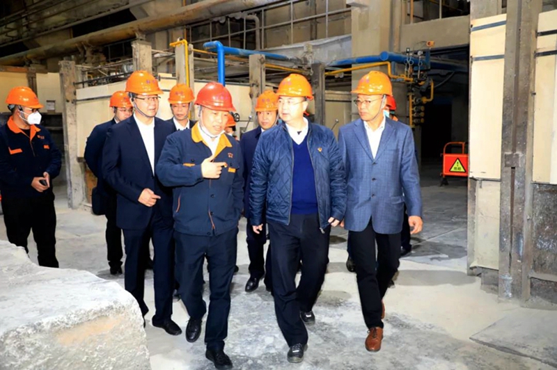 韶关市委书记王瑞军陪同松山湖材料实验室理事长王恩哥院士到韶冶实验室技术改造现场调研。潘志立/摄