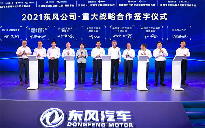 9月26日,在2021东风汽车品牌秋季发布会暨第六届科技创新周开幕式上,东风公司发布了2021东风公司重大战略合作项目,并与合作方举行了战略合作签字仪式。松山湖材料实验室常务副主任陈东敏代表实验室与东风公司签署战略协议,双方联合创立东风创新中心(研究院)。此次签约由湖北省副省长肖菊华、东风公司董事长、党委书记竺延风、东风公司董事、党委副书记黄伟武汉市委常委、武汉经济技术开发区工委书记刘子清,十堰市副市长刘运梅共同见证。