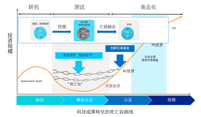去年我提出了一个“三品论”:样品、产品、商品。我认为传统的大学、研究院所通常做的是“样品”,比如做一个话筒,做了100个以后挑出1个好的,在国际上发一篇优秀的论文。但在松山湖,我们觉得话筒有用,就会找这个团队问他们愿不愿意出校门或研究所大门,到我们实验室这个平台上试一试。