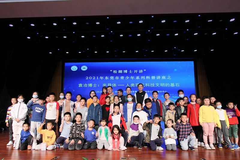 10月23日、29日,第三代半导体团队袁冶博士率先在青少年活动中心、东莞中学松山湖学??玻?00余名听众带来了《半导体:人类现代科技文明的基石》主题讲座。通过结合社会发展和材料历史进程,袁老师普及了半导体材料结构原理及实际运用,带领青少年们了解到半导体材料在人类现代文明中举足轻重的作用,也帮助大家认识到如今国际科技竞争的严峻形势,向青少年们打开了材料领域的大门。