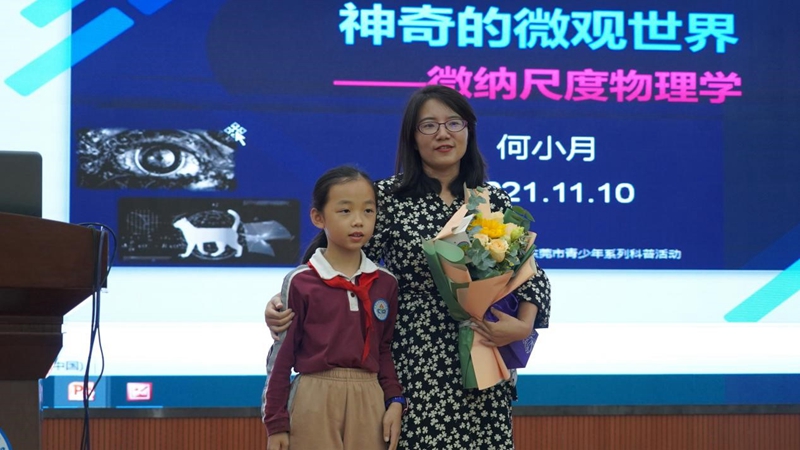 10月30日、11月10日,材料制备与表征平台何小月博士在青少年活动中心、常平第三小学开展了2场讲座,460余名青少年聆听了《神奇的微观世界——微纳尺度物理学》。“ 纳米是一种什么米?”这个问题拉开了讲座序幕。何博士利用大量图片及科学家的故事,带领大家从宏观角度“游览”微观世界。期间,微观尺度、原子结构、量子力学等物理理论知识,大大拓宽了青少年们的物理视野。