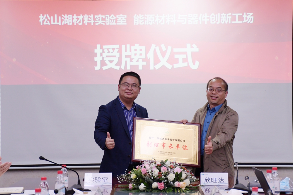此外,欣旺达荣任松山湖材料实验室“能源材料与器件创新工场”副理事长单位,并于仪式当天获得授牌。