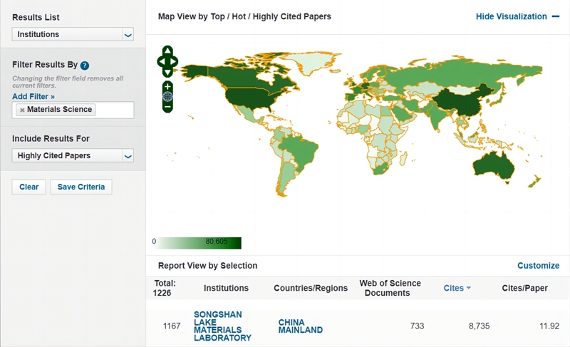 松山湖材料实验室首次进入ESI全球材料科学前1%排名
