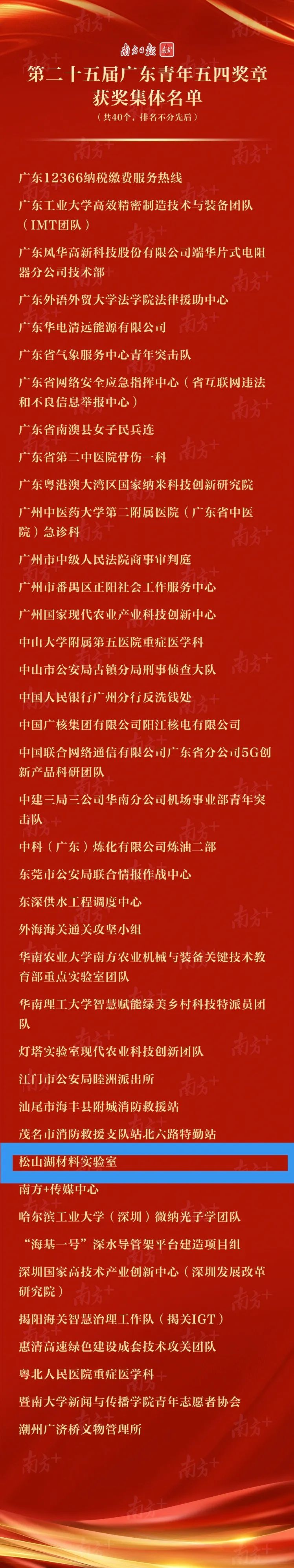 喜讯丨松山湖材料实验室荣获广东青年五四奖章集体