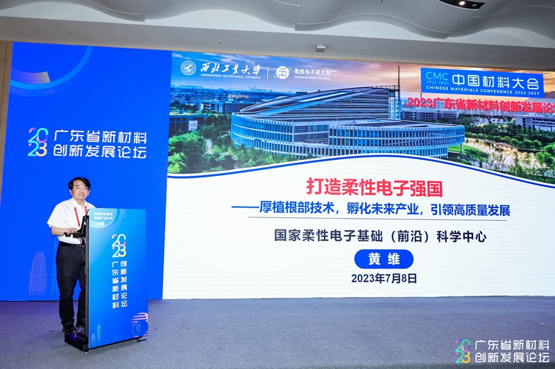 主旨演讲环节,黄维院士发表了题为《打造柔性电子强国——厚植根部技术,孵化未来产业,引领高质量发展》的主题演讲,分享了柔性电子技术引领高质量发展的战略思考。汪卫华院士发表了题为《新材料研发与产业化“松湖经验”》的主题演讲,分享了松山湖材料实验室在新材料研发与产业化方面取得的创新实践经验。