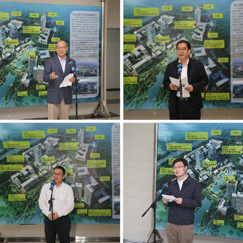 中国科学院院士、松山湖材料实验室理事长王恩哥,东莞市市委书记梁维东,广东省科技厅副厅长刘炜,中科院科发局副局长赵千钧,中科院广州分院院长吴创之,中科院物理研究所所长方忠、中科院物理所党委书记副所长文亚,中科院物理所党委副书记纪委书记李明,东莞市市政府、市科技局、市财政局、松山湖管委会和东莞理工学院相关领导,中科院其它相关院所代表、专家参加了揭牌仪式和会见。东莞市市委常委、宣传部部长杨晓棠主持了揭牌仪式。随后方忠所长、文亚书记一行先后参观了实验室过渡办公楼、实验室选址预留地、幸?;ㄔ叭瞬殴⒌?。在实验室团队入驻答辩会上王恩哥理事长为汪卫华院士颁发了松山湖材料实验室主任的聘书。