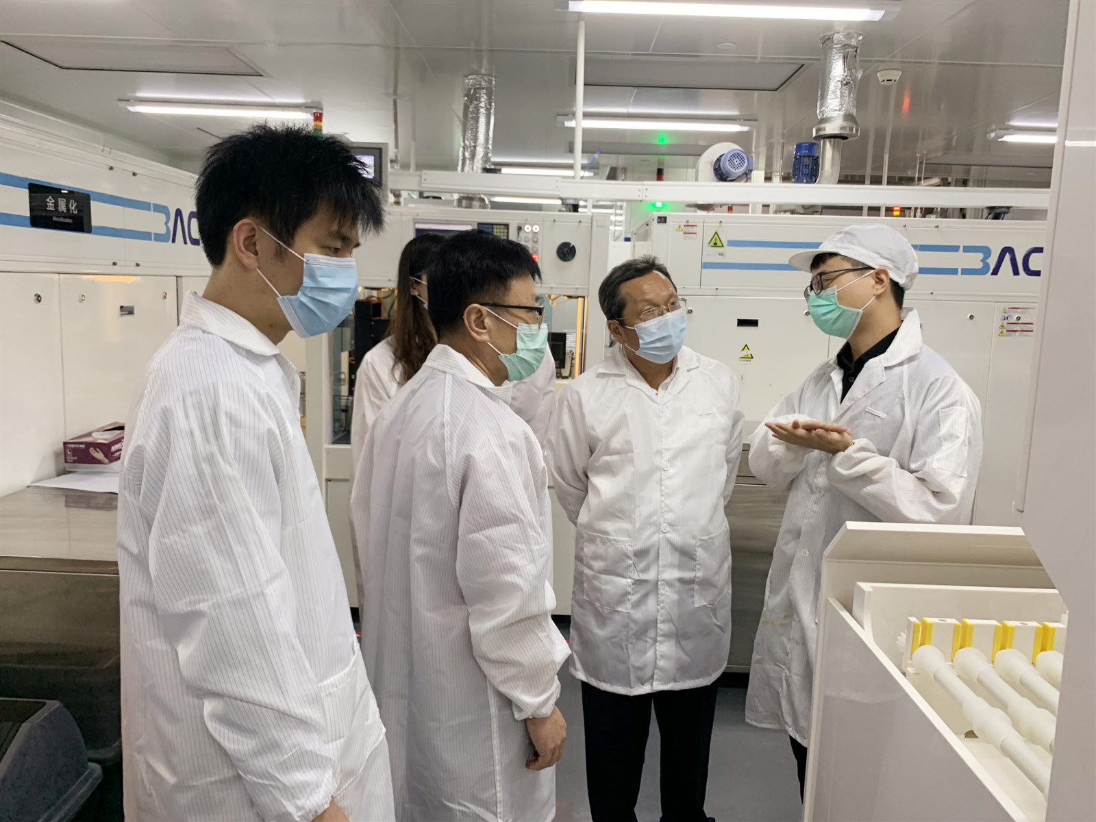 张广宇副主任向李晓辉副主任一行详细介绍了实验室的基建情况、核心板块、人员规模等情况,并展示了实验室创新样板工厂项目团队近期主要科研进展及成果。随后,李晓辉副主任一行参观了锂离子电池团队和高效晶硅团队实验室,实地了解了科研团队的主要研究方向、工作环境及设备情况。