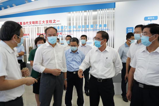 2020年7月30日上午,中山市委书记、市人大常委会主任赖泽华和市委副书记、市长危伟汉率领中山市党政代表团一行 62 人在东莞市市委书记梁维东、常务副市长喻丽君、市委秘书长吴志刚的陪同下,莅临松山湖材料实验室(下文简称“实验室”)参观调研。实验室建设工作领导小组副组长兼办公室主任吕兢,实验室副主任黄学杰参与了此次调研。
