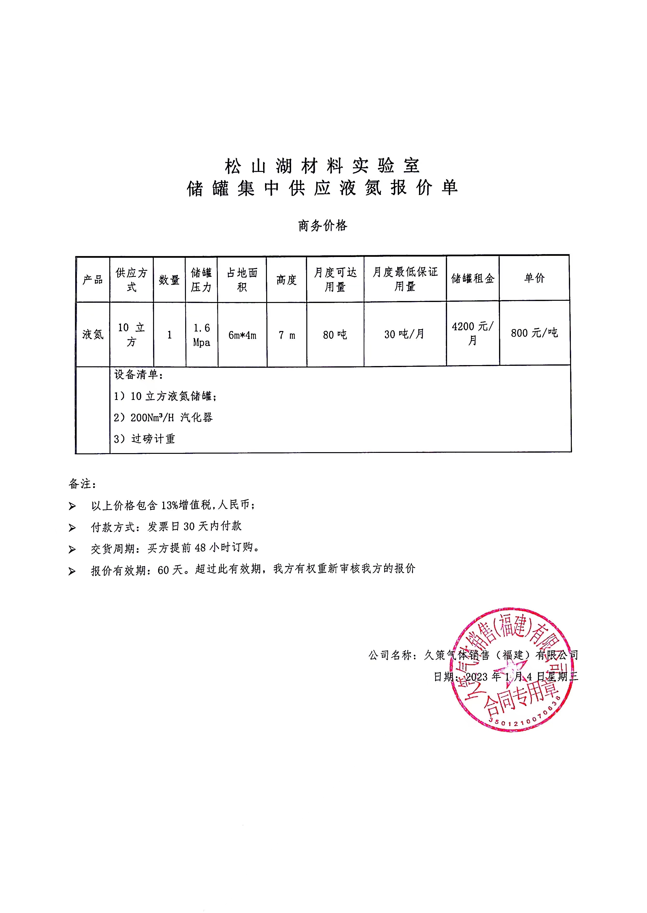 按照《松山湖材料实验室政府采购管理办法》规定,采购政府集中采购目录以外且单价或批量为松山湖材料实验室微加工与器件平台关于2023年度液氮采购项目,采购预算 99万元。经采购需求部门进行市场调研及比价后,拟由液化空气(广东)工业气体有限公司提供(或承担),产品型号:详见附件 ,价格: 按照实际需求供货,合同总限额99万元。