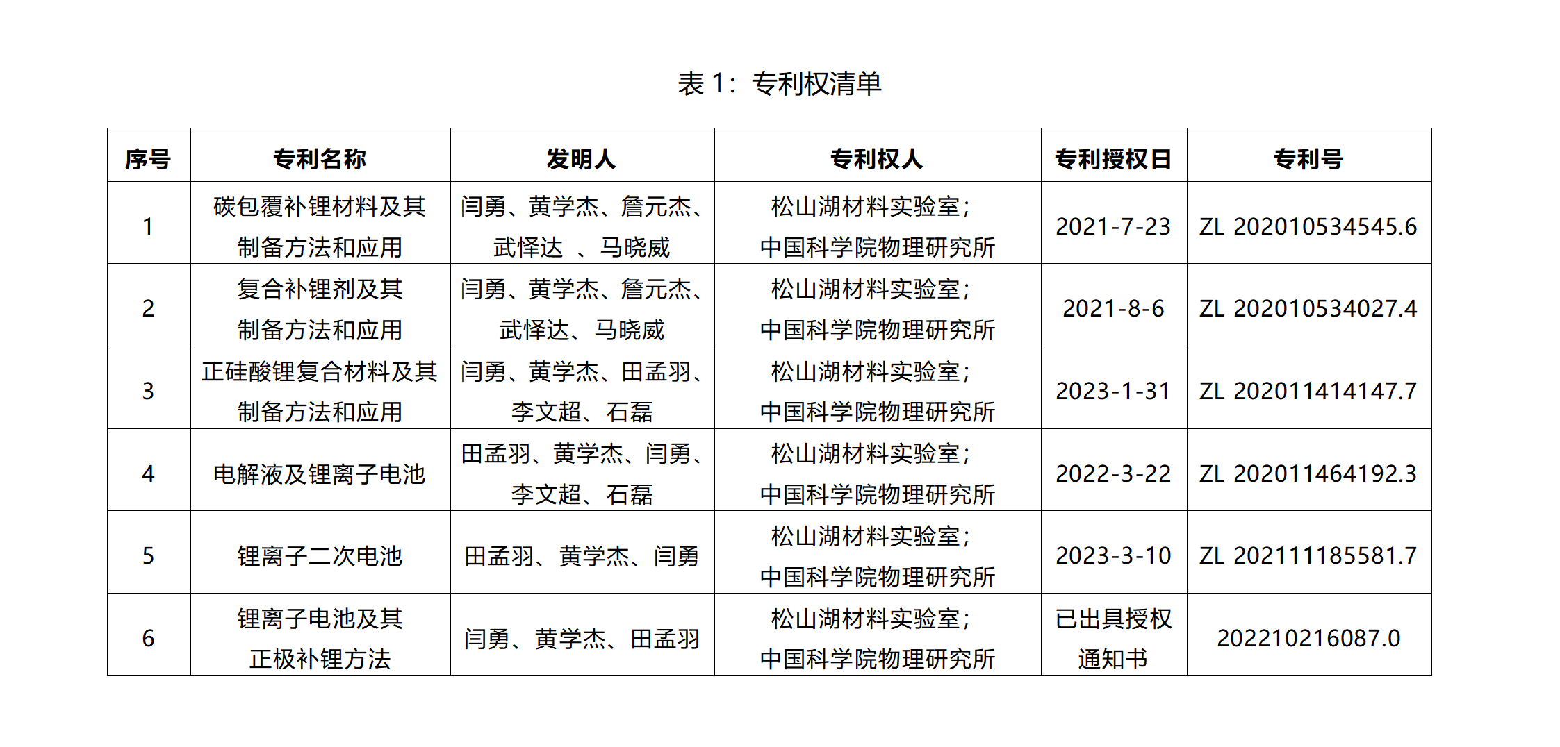 根据《松山湖材料实验室科技成果转化管理办法》规定,现对松山湖材料实验室(以下简称“材料实验室”)锂离子电池材料团队“碳包覆补锂材料及其制备方法和应用”等16项职务科技成果转化股权奖励相关信息公示如下: