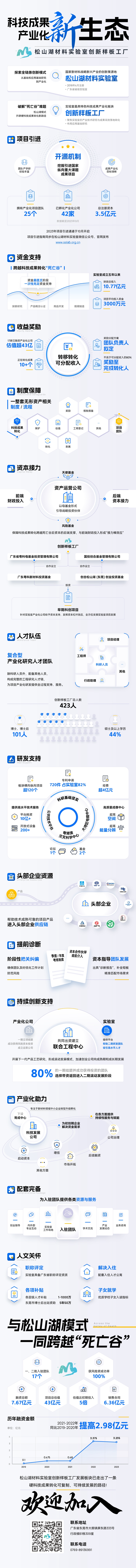 松山湖材料实验室创新样板工厂期待您加入! 2023-11-03 1042 正文字体: 小 中 大 松山湖材料实验室是广东省首批省实验室之一,是参与大湾区综合性国家科学中心先行启动区(松山湖科学城)建设的重要科研平台,致力探索“前沿基础研究→应用基础研究→产业技术研究→产业转化”的全链条创新模式。 创新样板工厂——松山湖材料实验室科技成果产业化板块,聚焦实验室的产业技术研究与成果的高效落地转化,探索出可复制、可推广的松山湖模式,着力破解硬科技成果转化的“死亡谷”难题,打造科技成果产业化新生态。 撰稿:创新样板工厂发展部