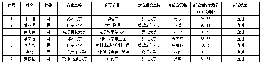 松山湖材料实验室2025级港澳联培博士生补录面试已结束。经实验室招生工作领导小组面试、评分,并交实验室主任办公会审核批准,下列申请人通过本次面试考核,现将面试合格名单予以公示(见下表),公示期2024年11月25日至2024年11月29日,共五个工作日。