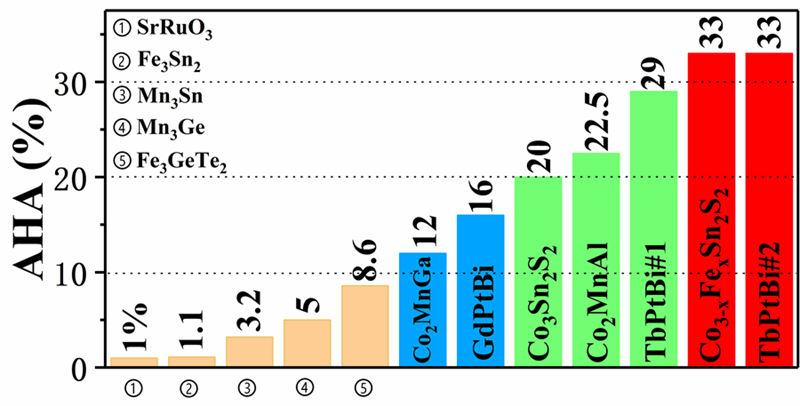 图4. TbPtBi单晶:巨大的反常霍尔角