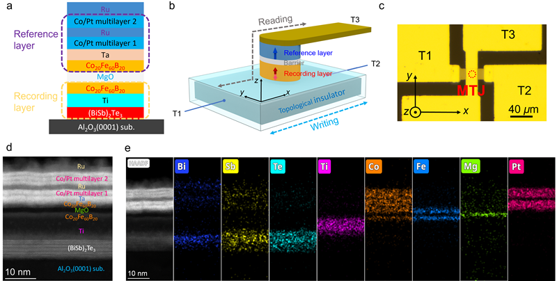 图1. 拓扑 SOT-MRAM器件的原理示意图和结构表征