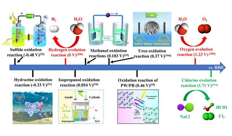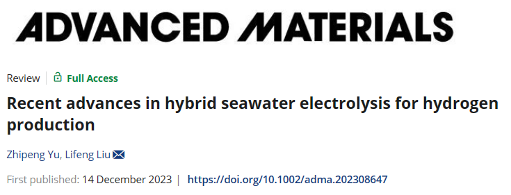 基于前期的研究基础,刘利峰研究员及其团队的客座研究员余志鹏博士近日受Advanced Materials编辑Flóra Kiss博士的邀请,在该杂志上撰写了一篇题为“Recent advances in hybrid seawater electrolysis for hydrogen production”的综述文章(Adv. Mater. DOI: 10.1002/adma.202308647,见图2),系统总结了混合海水电解制氢目前的研究现状,包括几种混合海水制氢的方式及其优缺点以及最新的自驱动混合海水制氢的概念等。同时,该文章也对目前混合海水电解制氢中遇到的挑战及未来应该努力的方向提出了自己的观点。该综述为混合海水电解制氢研究方向上第一篇综述性文章。松山湖材料实验室为文章的第一单位。