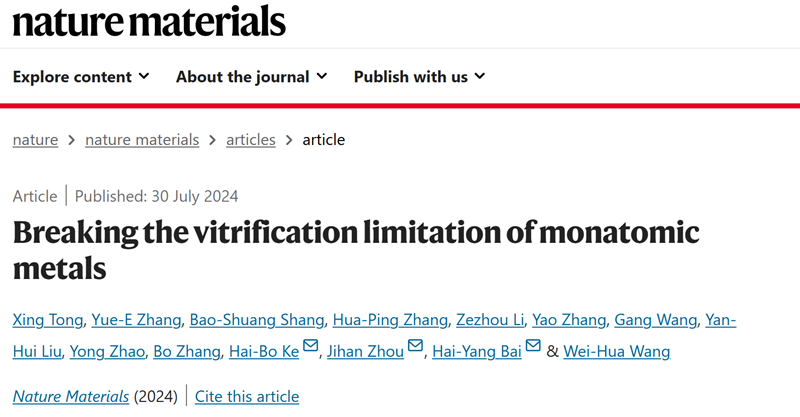 科研进展丨突破物质非晶形成能力极限,解决制备单质非晶金属百年难题的新技术