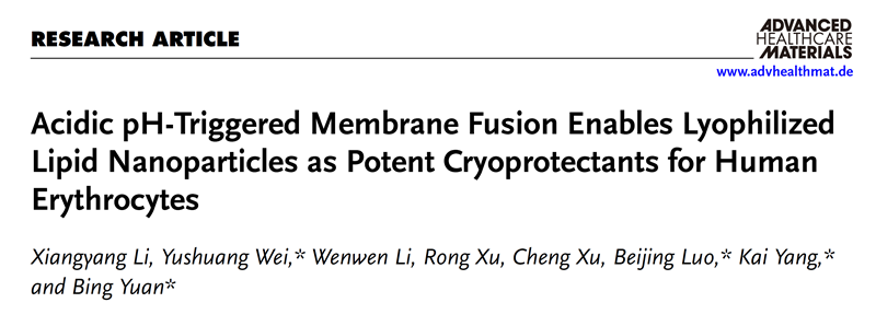 科研进展丨智能“pH开关”脂质体纳米颗粒,赋能红细胞冷冻保存难题