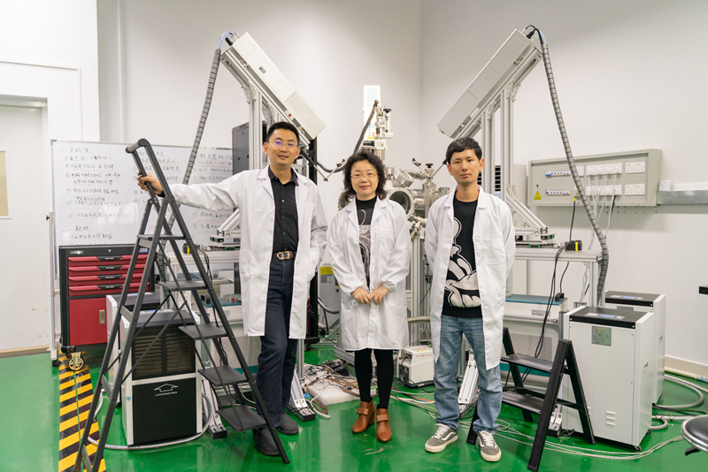 “我们用激光去打真空腔里面的靶材,由于瞬时高温,靶材表面的成分会变成等离子体向外喷射,之后接触高温衬底,外延沉积完成镀膜,过程就像是烙饼一样。”该设备主要的设计和搭建者冯中沛博士是团队里的一名年轻人,设备成功运转,让他格外兴奋。