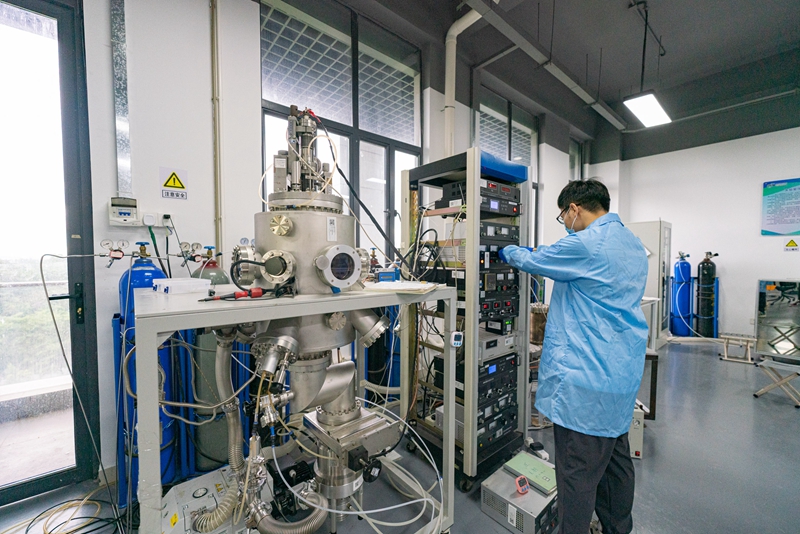 在该团队的实验室内,占据最多位置的设备,就是材料生长设备。该团队利用磁控溅射法进行材料生长,相较于MBE(分子束外延)或MOCVD(金属有机物化学气相沉积),设备建设与运维成本更加低廉,材料生长面积更大,生长速度更快,具有显著产业化应用优势。