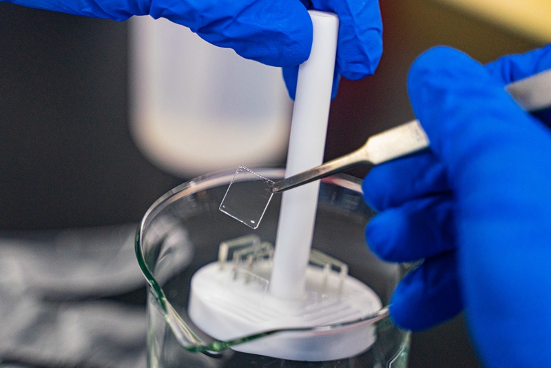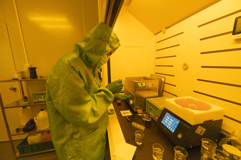 在该团队的实验室内,梅增霞从样品柜中拿出一件利用氧化镓薄膜制作的器件样品。在这里,他们正不断尝试,挖掘材料中的物理现象,优化材料的光电性能,提升器件的灵敏度和稳定性。自2019年底进驻实验室以来,团队已经申请了近十项相关发明专利。目前他们制备的非晶氧化镓日盲紫外探测器的探测率已达到1018Jones,紫外/可见抑制比~108,增益接近104;凭借简单的工艺,器件能实现快速刷新的工作模式;在未进行任何封装的情况下,器件在完成制作半年后仍能达到最初的性能。