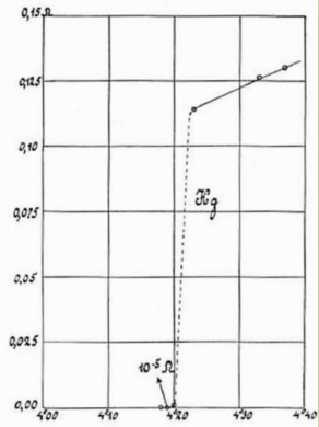 卡莫林·昂内斯测量低温下水银的电阻时发现,在4.2K附近时,水银的电阻突然消失了!他惊讶地重复了这个实验,经过反复验证,他确定这是一种新的现象,人们把它称为超导体。