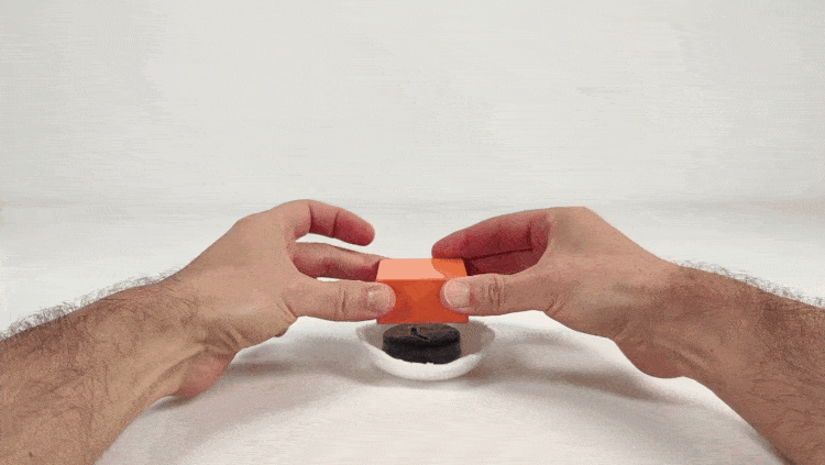 然后把它放到磁铁做的轨道上,可以看到超导体处于漂浮状态,一推它就开始不停地运动。